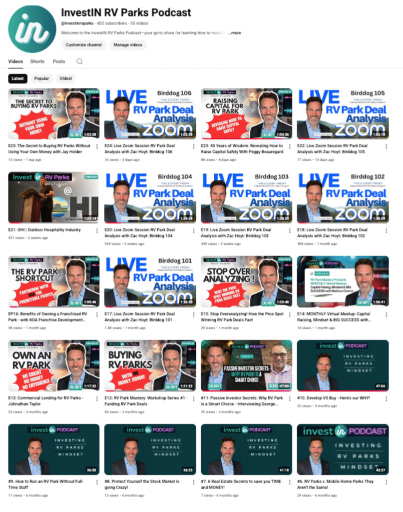 On this podcast you’ll find a mix of Zach Hoyt’s RV Park Mastery sessions, deep-dive conversations on outdoor hospitality investing, behind-the-scenes segments from live deal analysis calls, interviews with RV park owners and operators, and fresh insights recorded specifically for this audio experience.